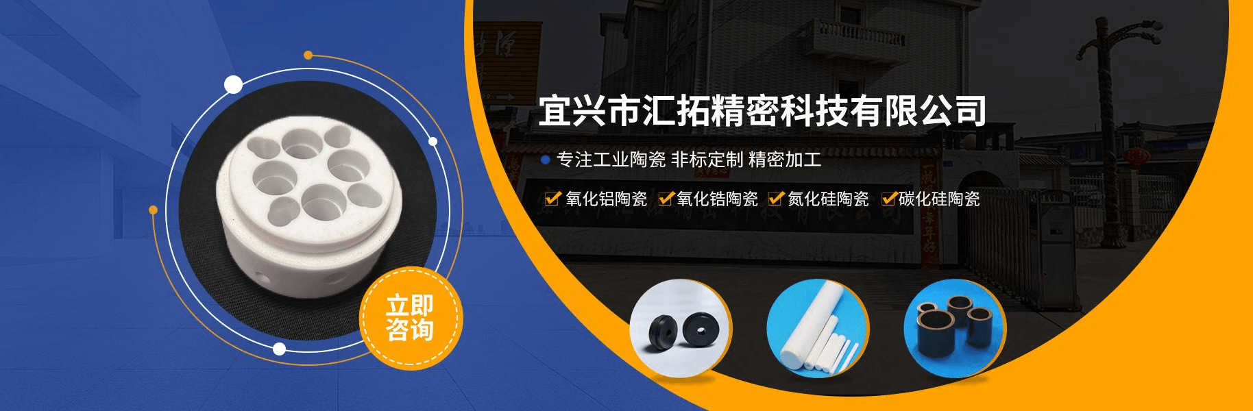 宜興市匯拓精密科技有限公司坐落于舉世聞名的陶瓷之*—江蘇省宜興市,本企業(yè)處于滬、寧、杭三角中心,地理位置*越,交通運(yùn)輸方便,是集工業(yè)陶瓷制造、加工、銷售;耐火材料、、陶瓷原料、特種陶瓷為一體的綜合性企業(yè)。 工業(yè)陶瓷以生產(chǎn)氧化鋯陶瓷、氧化鋁陶瓷(99瓷、95瓷)、氧化鎂陶瓷、碳化硅陶瓷、氮化硅陶瓷等為主。產(chǎn)品具有耐磨損,耐高溫,耐腐蝕,高強(qiáng)度,絕緣性能好等特點(diǎn),廣泛用于于機(jī)械、紡織、儀表、電力、航...